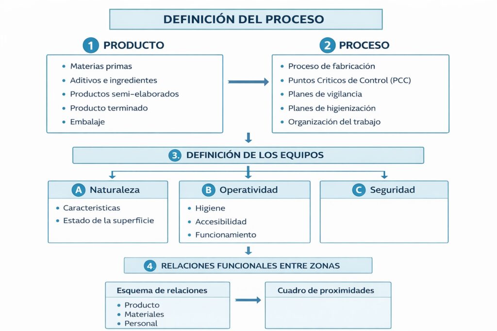 - La tecnología del proceso, que determina cómo se realizará la elaboración de un producto y determinará cómo se utilizarán los equipos del proceso, sus condiciones de operación y funcionamiento.